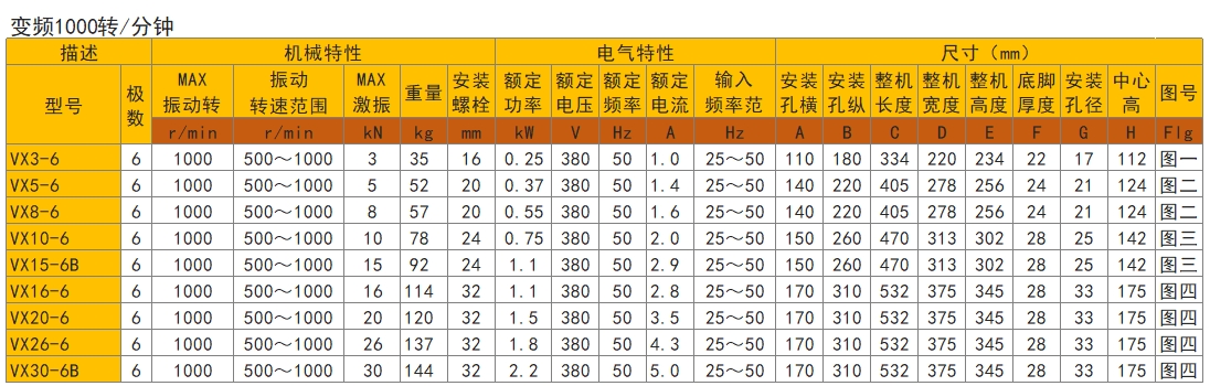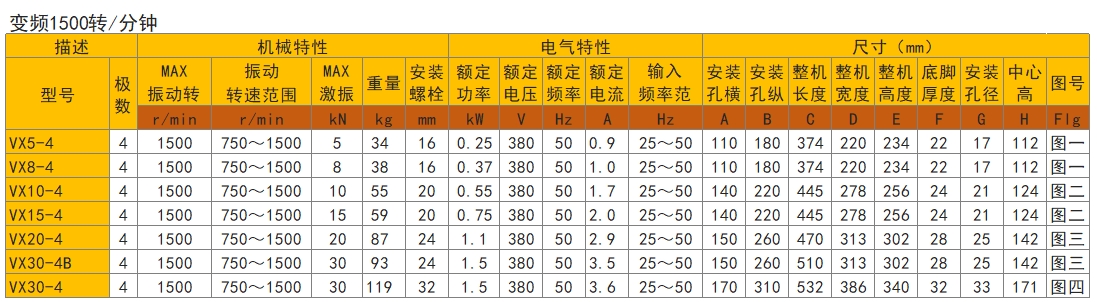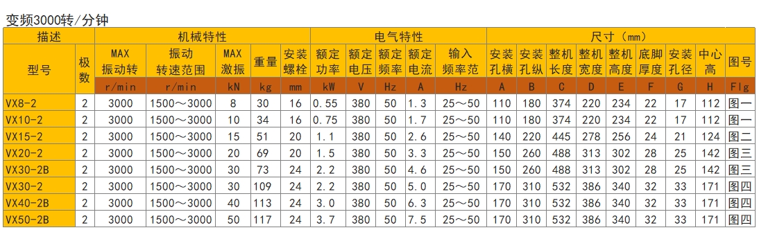 VX系列振动电机可以连接变频器调频使用。选用纯铜线包,优级冷轧硅钢片,铸铁机壳,机身设计充分考虑到运行环境,使用中不断脚不开裂。激振力可以调节,使用方便,能耗小、噪音低、寿命长。